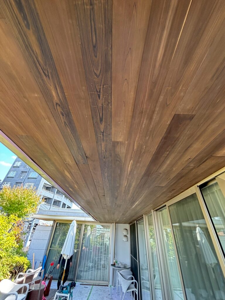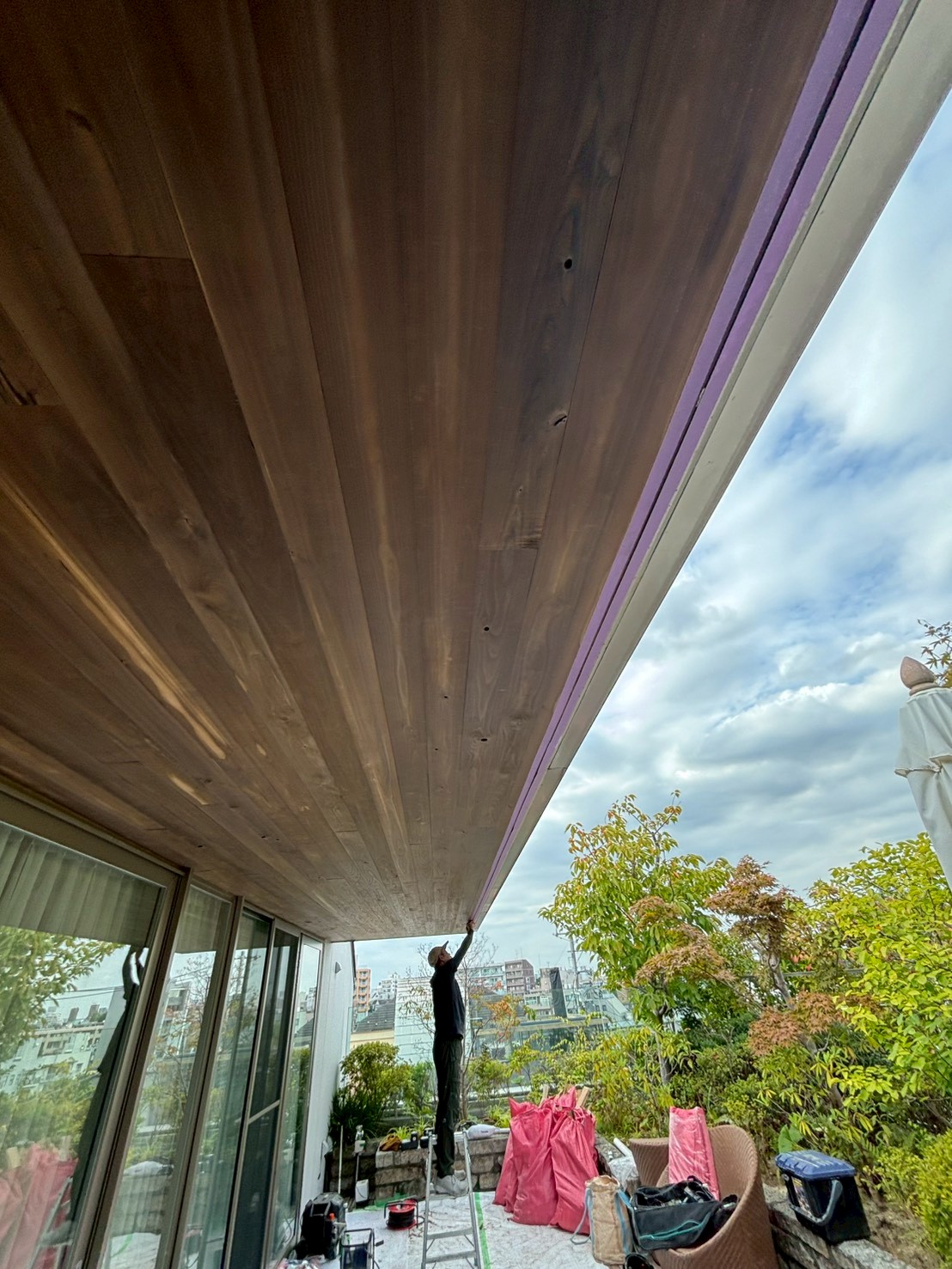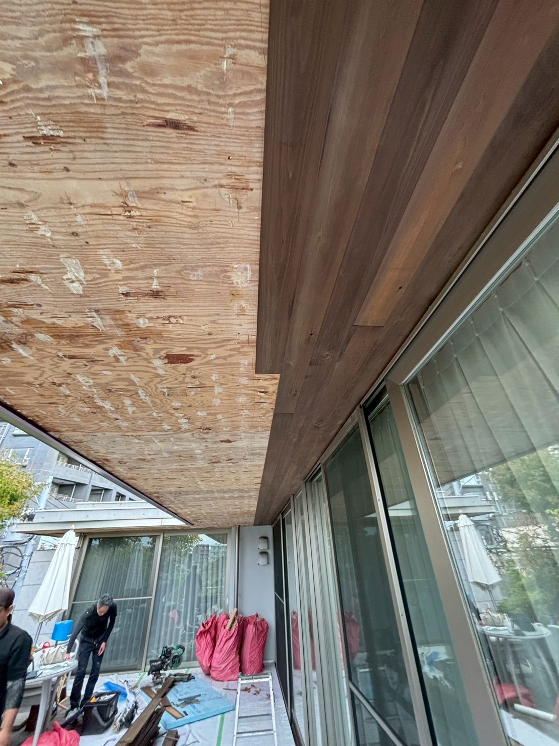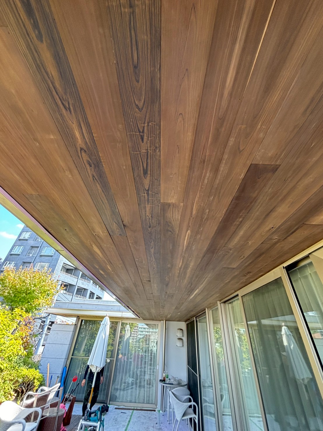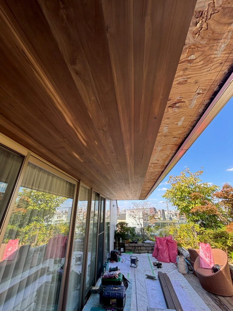 天板を張り替えるだけで、1階居室とウッドデッキそして庭とのつながりが、より一層心地よく明るい空間に生まれ変わります